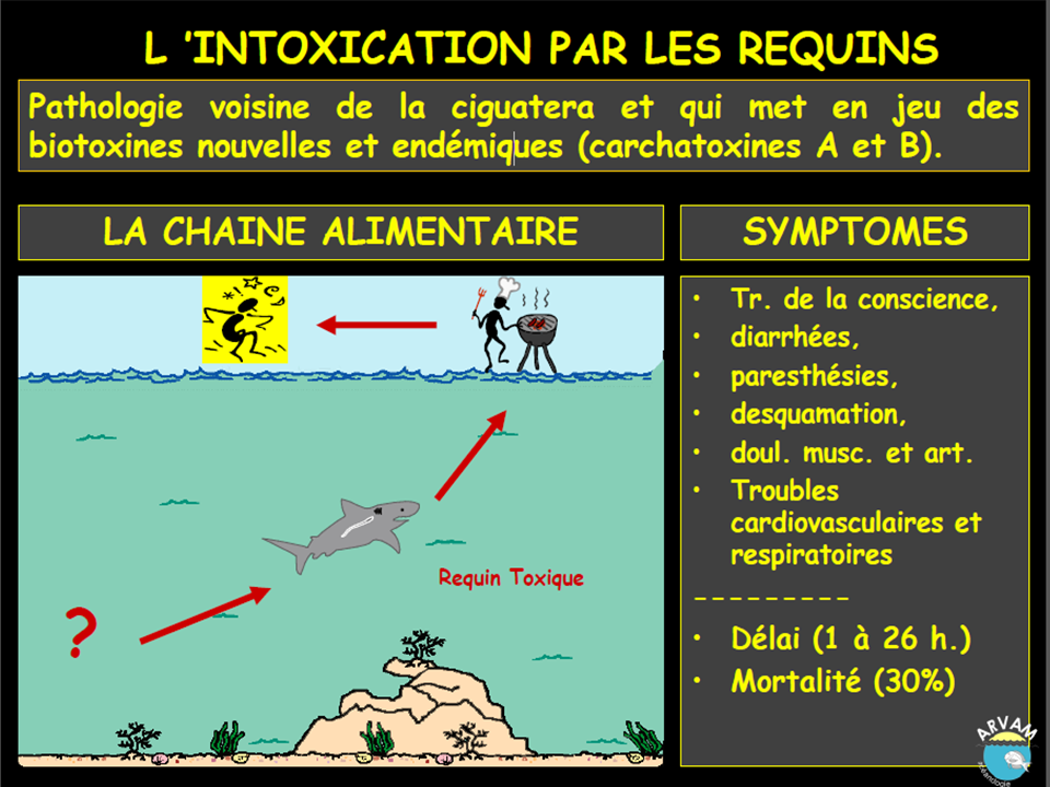 « Une réglementation locale spécifique existe depuis 1966 et évolue régulièrement en fonction de l’état des connaissances, de la situation épidémiologique locale et régionale. Une révision majeure a été entreprise en 1999, afin de prendre en compte la situation épidémiologique à Madagascar où de nouvelles formes d’intoxications sévères mettant en cause des toxines d’origine méconnue ont été observées (clupéotoxisme, intoxication par certaines sardines et carchatoxisme, par certains requins) (Champetier et al. 1997). L’arrêté préfectoral intègre ainsi les espèces de sardines et de requins les plus souvent mis en cause dans ces formes d’intoxications. » (Bulletin épidémiologique 2013)