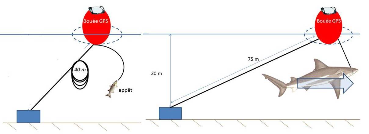 -Drumlines dites « intelligentes » (Smart drumline) : en zone côtière, reliées à une bouée GPS (intervention dans les 2h). Actuellement 1 pêcheur