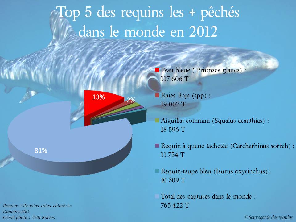 Le requin peau bleue représente 13% des captures totales dans le monde. Cette espèce a toujours été très prisée par les pêcheries. Elle est considérée comme « quasi menacée » dans le monde. Captures : 114 829 t en 2011 et 92 708 t en 2010.