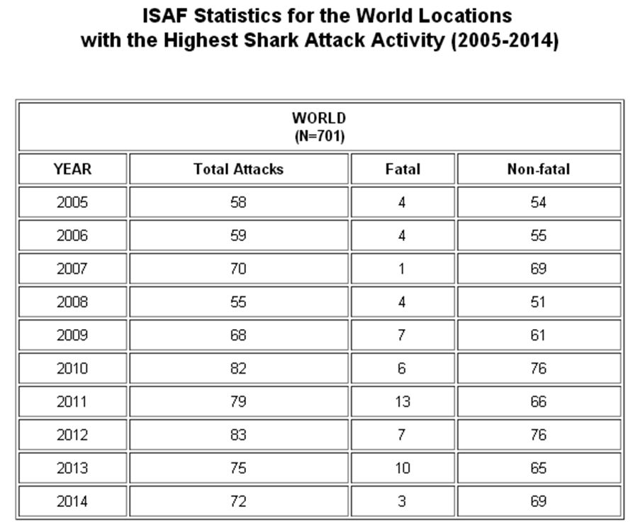 Données de ISAF (International Shark Attack File) entre 2005 et 2014