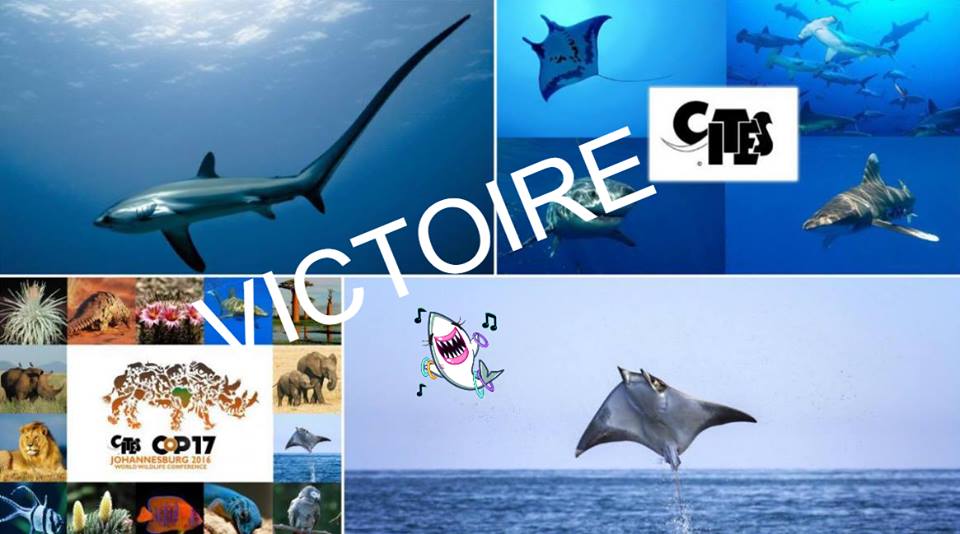Johannesburg, en Afrique du Sud, du 24 septembre au 5 octobre 2016. Breaking news Les propositions concernant les requins et raies ont reçu des votes en leur faveur. Ainsi, le requin Soyeux, les requins Renards (12 mois pour une mise en application) et les raies mobula (6 mois de délai pour sa mise en application)Lire la suite « 17e session de la Conférence des Parties (CoP) : Succès pour les requins »